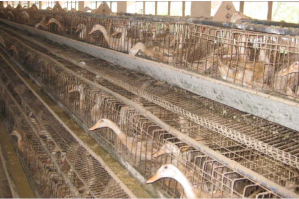 笼养时需要特制鸭笼等设施,使养鸭的成本(笼和槽)一次性投资增加,如仅饲养 1 年,经济效益不如平养可观,若多年利用的话,成本会大大降低。