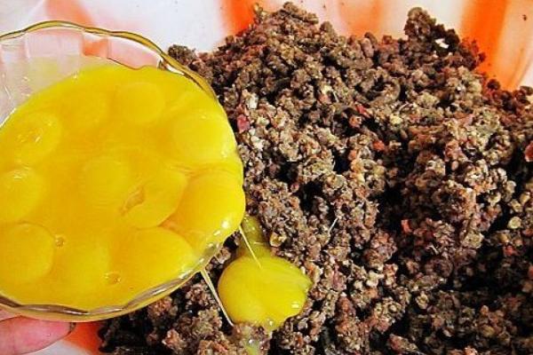 3、秋季配方:牛肉0.4斤、黑芝麻0.2斤、土鸡蛋1.8斤、熟玉米粉0.5斤、黄豆粉0.2斤、山楂0.2斤、山药0.2斤、胡豆粉0.2斤、绿豆粉0.2斤、碗豆粉0.1斤、构杞0.4斤、黄蟮骨头1.5斤,秋天是所谓养膘的季节,催性和补充体力、营养是最重要的,所以黄蟮骨头的比例加重了,牛肉比例比春季加重了些,土鸡蛋和构杞的比例也增加了,加入黑芝麻,使羽毛显得油亮。