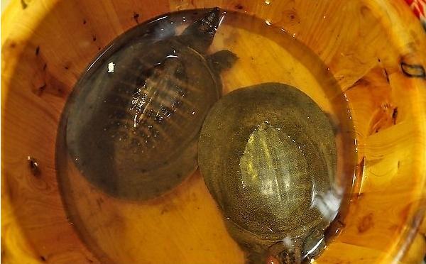 2、除了看甲背的壳质地之外还可以看野生甲鱼的甲背颜色,一般呈现灰黑色和土黄色的壳大部分都是野生的甲鱼。