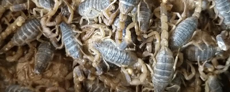 3、合理喂食是蝎子能否养殖成功的关键。根据蝎子具有“只要饱餐1顿,就可以6-7天不出洞穴”的特性,每隔5-7天投食1次。每次投食要适量,以有一点点剩余为宜。据试验,每2000只蝎子每次投150克食料即可,蝎子昼伏夜出,故投食的时间放在傍晚。