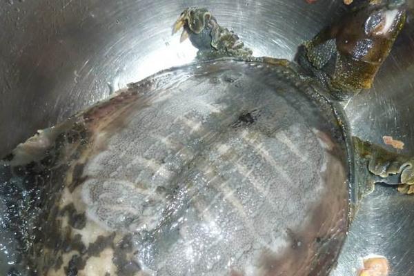 2、病鳖先用高锰酸钾溶液200ppm,每立方用200克,侵洗20分钟入池,然后放到湿润的河沙晒背30分钟,再放到阴凉处,每天处理3次左右,连续2天,放回原池即可。