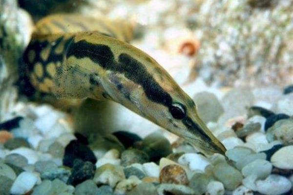 3、中华沙鳅:中华沙鳅分布于长江中、上游。又称钢鳅。吻长而尖。须3对。颐下具1对钮状突起。眼下刺分叉,末端超过眼后缘。颊部无鳞。肛门靠近臀鳍起点。尾柄较低。栖居于砂石底河段的缓水区,常在底层活动。