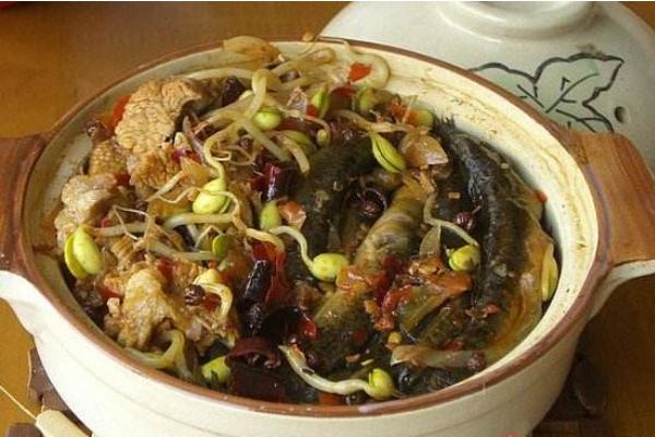 韩国人喝泥鳅汤壮阳,我国浙北民间也有一道非常受欢迎,且营养价值更高的菜――泥鳅钻豆腐。专家指出,泥鳅与豆腐搭配,不但在味道和口感上会增色不少,更重要的是这两种食材中的营养素充分互补,使得菜肴的进补功效也跟着大大提高。 这道菜做起来也很有意思,先把小泥鳅放在有蛋清液的清水盆中养两天,让它们把体内的脏物排干净,之后洗净。砂锅里先放入一些排骨汤,再放整块嫩豆腐和泥鳅,加盖慢炖稍许时间。泥鳅被热气所逼钻入豆腐躲藏,待至汤沸即全部烫死在豆腐中,然后再转小火,并加入醋、酱、糖、葱、蒜泥等做成的调料,就可以享用了。