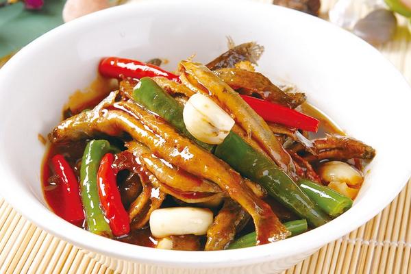 1、先将泥鳅用热水烫后,换水洗去黏液,剖腹去内脏,控干水分,入油锅煎至金黄色。