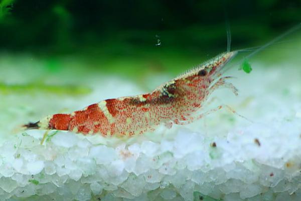 常见的最容易上手的欣赏虾,由黑壳虾米改进提纯来的,身上有白色斑点,同样是清洁虾的一种。