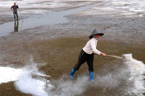 一般对于水源充足、排灌较为方便的池塘可采用干池清塘。先将池水放干或留水深5-10厘米,亩用生石灰50-75公斤(如淤泥较多可适当加大生石灰使用量),清塘时在四周池底挖坑或用木桶等容器,把生石灰放入加水溶化,不等冷却立即均匀向四周全池泼洒,用耙耙动塘泥效果更好。