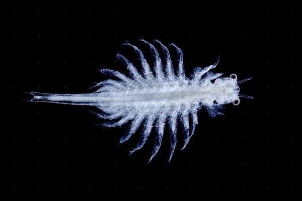 3、休眠卵。丰年虾在盐度千分之一百以上会产生直径约200~280微米的休眠卵,即一般俗称为耐久卵。耐久卵呈灰褐色,有坚硬的外壳,当漂浮于水面或悬浮于水中。能在水底污泥中渡过缺氧、寒冷、干燥等恶劣环境。