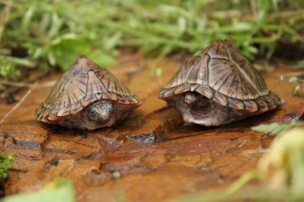 2、小鳄龟:小鳄龟又叫拟鳄龟、平背鳄龟等,背甲像半球形的屋顶,有一些微小的锯齿状,颜色从暗橄榄绿到棕色都有,头部和四肢很有力,尾巴相当长,腹甲相对而言则较小。