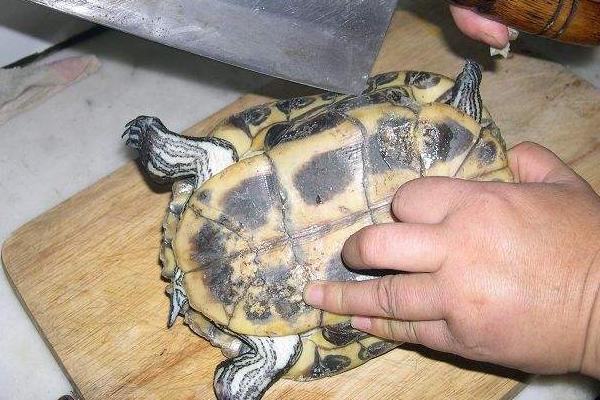 1、杀乌龟首先要把它的头砍下来,如果乌龟的头一直缩进壳里面那么就在盆里放些水,然后把乌龟的头部抵到盆底,主要是为了不让乌龟的头有伸出来给它咬你的机会。
