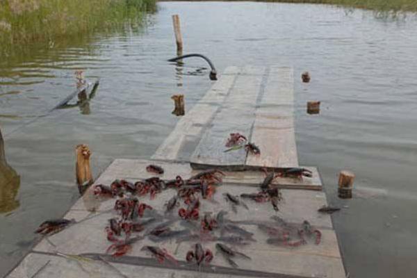 7、投喂饲料:小龙虾多在夜里活动觅食,每天上午十点、下午四点各投喂一次,下午投喂量占全天投喂量70%左右,日投喂量可根据天气、水质状况以及虾活动觅食情况适当增减。