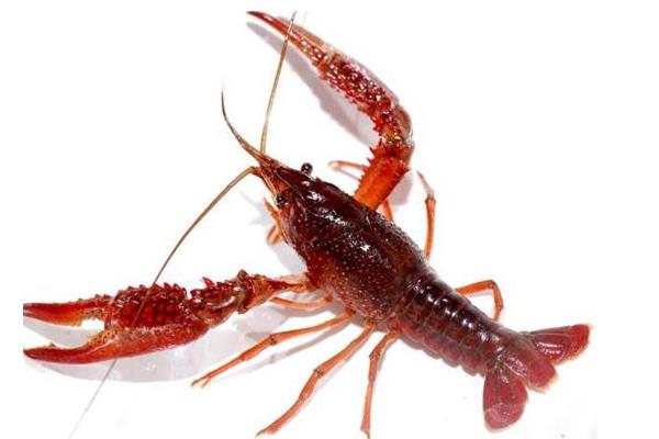 小龙虾也称克氏原螯虾、红螯虾和淡水小龙虾。形似虾而甲壳坚硬。成体长约5.6~11.9厘米,暗红色,甲壳部分近黑色,腹部背面有一楔形条纹。幼虾体为均匀的灰色,有时具黑色波纹。螯狭长。甲壳中部不被网眼状空隙分隔,甲壳上明显具颗粒。额剑具侧棘或额剑端部具刻痕。
