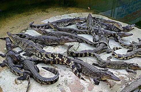 3、鳄鱼品种选择 饲养鳄鱼主要品种是暹罗鳄、尼罗鳄、湾鳄。