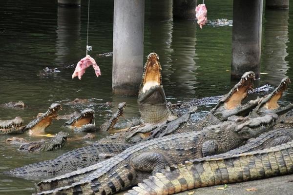 鳄鱼是肉食动物,为满足这些家伙的胃口,李朝臻及员工每天都要到市场购买一定数量的新鲜鱼仔及冰鲜鱼,来做鳄鱼的主食。正常情况下,鳄鱼要从小长至15公斤重,大约需要1年半的时间,期间平均每条鳄鱼要消耗掉新鲜鱼仔及冰鲜鱼120多公斤。