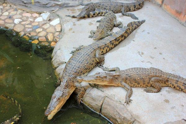 2、繁殖习性:成年鳄鱼5~6月交配,连续数小时,而受精仅1~2分钟,7~8月产卵。雄鳄独占领域,驱斗闯入者,一雄率拥群雌。