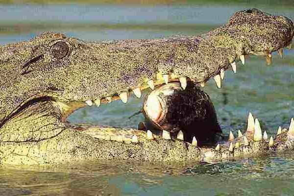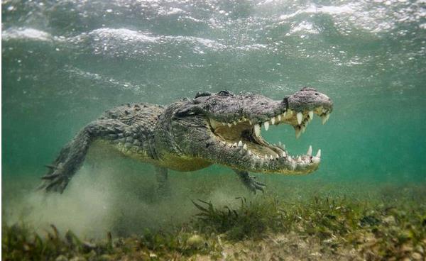 2、据考古发现鳄鱼最大体长达15米重近1.5吨,但现存大型种类鳄鱼平均体长3米以上重约100千克以上,颚强而有力,长有许多锥形齿,腿短,有爪,趾间有蹼,尾长且厚重,皮厚带有鳞甲。人们的心目中鳄鱼就是恶鱼,一提到鳄鱼立刻就会想到血盆大口、密布的尖利牙齿、全身坚硬的盔甲、时刻准备吃人的神态。