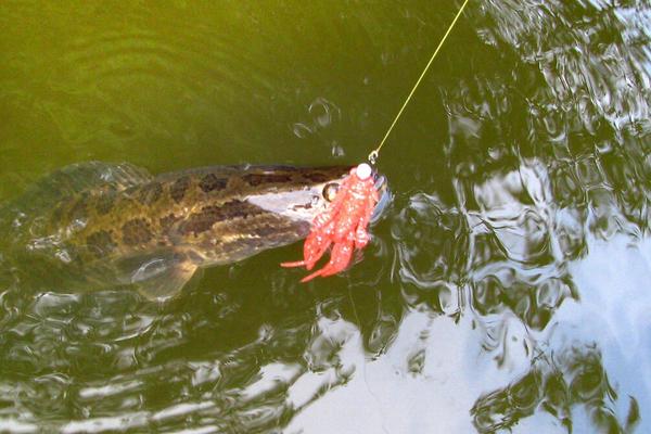 野钓黑鱼时,一定要细心、耐心。砸击水面进行探钓的同时,还要仔细观察,做到及时准确地辨别黑鱼卵和小黑鱼群的位置。只要发现了目标,钓获黑鱼的可能性就会特别大。当有黑鱼吞钩时,不要太急着提竿,而是要等它们进行第二次第三次吞咽后再提竿,可以有效避免脱钩跑鱼现象。
