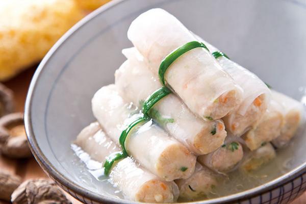 4、炒锅上大火,加入高汤,放入蒸鱼卷的汁水,投入葱段,加入盐、味精,用湿淀粉勾薄芡,淋在鱼卷上,撒上白胡椒粉,淋上香油即可。