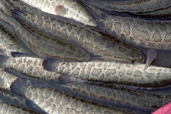5、黑鱼起捕。每年11月以后,水温下降到18℃,黑鱼吃食减少,就可适时起捕上市。少量起捕可利用黑鱼喜戏水的特性,在向稻田注入新水时,在进水口先设置一张鱼网,诱其跳入网内而捕获。全部捕尽则需放干池水,使黑鱼随水流集中到鱼沟鱼凼中,然后从泥中翻出黑鱼进行人工捕捉。