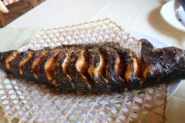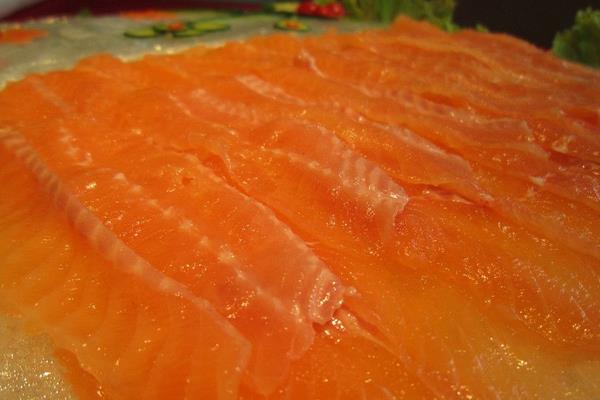 制作方法:首先将虹鳟鱼切成适当大小的块状煮,然后将沙拉酱中兑入白葡萄酒、酱油、芝麻油。在食用前,将盘中摆放好生菜做底后,将虹鳟鱼摆上,再倒上配好的调料。也可将虹鳟鱼在调料中沾过后食用。这种作法可以直接品尝到虹鳟鱼的鲜美,感受到鱼片入口后的柔和。