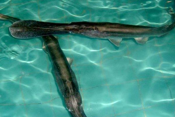 鸭嘴鱼,学名是美国匙吻鲟(又名鸭嘴鲟)英文名:Polyodonspathala 匙吻鲟,学名美国匙吻鲟原产美国密西西比河流域,是一种大型淡水经济鱼类,属鲟形目匙吻白鲟科。是从3亿年之前(即恐龙时期)就在地球上生活,并存留下来的一种珍稀鲟鱼类,是世界上匙吻鲟科中仅有的两个品种之一。它与中华鲟以及长江水域中的白鲟同属鲟形目白鲟科。