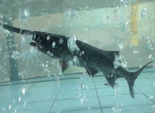 鸭嘴鱼学名:美国匙吻鲟(又名鸭嘴鲟)匙吻鲟,学名美国匙吻鲟原产美国密西西比河流域,是一种大型淡水经济鱼类,属鲟形目匙吻白鲟科。是从3亿年之前(即恐龙时期)就在地球上生活,并存留下来的一种珍稀鲟鱼类,是世界上匙吻鲟科中仅有的两个品种之一。它与中华鲟以及长江水域中的白鲟同属鲟形目白鲟科。