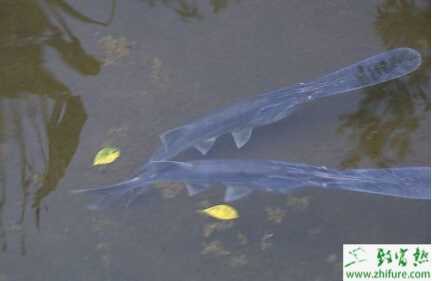 鸭嘴鱼又称鸭嘴鲟,学名美国匙吻鲟。主要以蚯蚓、小虾及浮游生物为食,因其形态特异,吻长而扁平,如鸭嘴,故得名。鸭嘴鲟原产于美国密西西比河流域,是从3亿年之前就在地球上生活,并存留下来的一种珍稀鲟鱼类,是世界上匙吻鲟科中仅有的两个品种之一。它与中华鲟以及长江水域中的白鲟同属鲟形目白鲟科,是鱼类中的极品鱼之一。