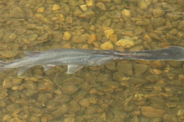 匙吻鲟又称鸭嘴鲟或者鸭嘴鱼,属鲟形目白鲟科匙吻鲟属,原产于美国密西西比河流域,是美国特有的一种大型淡水经济鱼类。匙吻鲟是一种大型滤食性淡水鱼类,其形态奇特,匙吻鲟体表裸露,泽润无鳞,在头部前方、口的上端有一个长而扁平的长吻,形如鸭嘴又像汤匙,吻长度为体长度的1/3,尾鳍歪尾形,尾鳍分叉,上叶长,下叶短:体表光滑,眼小,口在吻下,不能伸缩,前额高于口部,鳃盖布满梅花状的花纹,鳃耙密而细,鳃盖骨向后而延到腹鳍。体色为背部灰褐色,其中常有一些斑点,腹部灰白色。由于体形独特,所以这种鲟鱼既可食用又具有观赏价值,也成为养殖的重要对象。匙吻鲟性情温顺,生长迅速,适宜的pH值范围为6.5~8.0,养殖的水中溶氧应保持在3毫克/升以上。因为匙吻鲟是广温性鱼类,因而具有适应性强、生长迅速、摄食浮游动物、食物链短的特点。