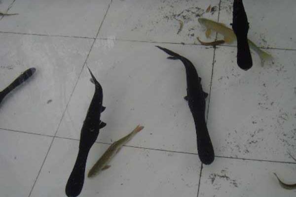 2、匙吻鲟鱼苗放养密度开始时200尾/平方米,长至5厘米时密度降到100尾/平方米。
