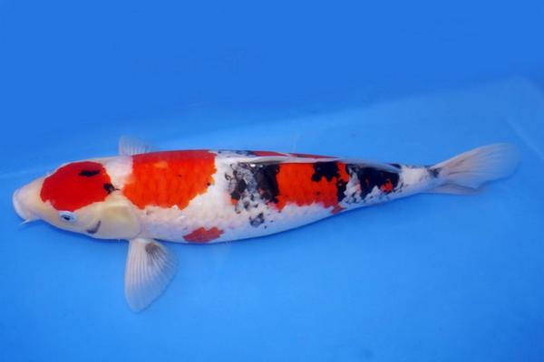 大正三色是指锦鲤身上有红色、白色和黑色三种颜色,而红色和白色是主要颜色,黑色作为点缀。黑色的斑纹被称为墨,在大正三色中,要求墨为小块的,不能太多,这样的大正三色锦鲤看上去会很清秀。