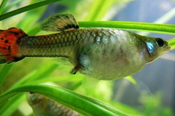 孔雀鱼的肛门后面的鳍会发生变化,公鱼和母鱼的肛门鳍都不一样,公鱼的鳍是呈尖形的,最后会发育成交配的器官,而母鱼的鳍是呈圆形的,但是母鱼在要生小鱼的时候臀鳍也会慢慢变成比较平整光滑的方形,即将生小鱼的母鱼的肛门会凸出来。