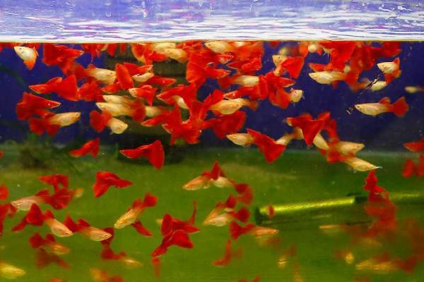 3、易繁殖:孔雀鱼的繁殖周期很短,一般在一个月左右,它们的生长速度快,只需3-4个月的饲养时间,鱼苗就能长成成鱼,而且它们的繁殖能力也很强,一般一次可以产10-100尾鱼苗,养殖过程中极易出现爆缸情况,为确保鱼群有足够的生活空间,需要根据鱼群数量而更换鱼缸。