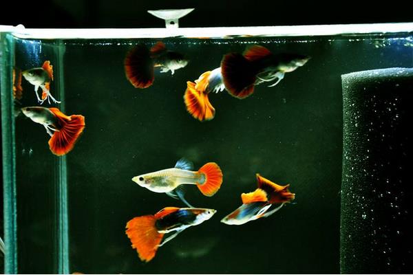 4、小孔雀鱼在可以分公母的时候就分开喂养,不然母鱼太早生不利于小母鱼的成长,合缸至少等到2~3个月的时候。