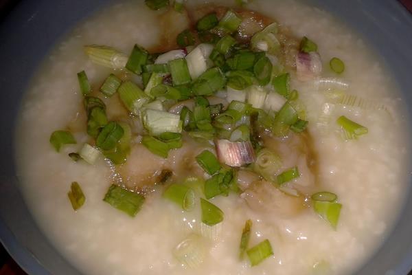 材料:高汤:小鱼干、冬菜、石斑鱼骨,石斑鱼、珍珠米,蚝油、酱油、花雕酒、玉米粉。