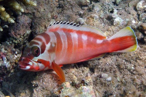 特征:云纹石斑鱼的油脂含量相比其它种类石斑鱼略高,所以得名油斑。胸鳍圆形,中央之鳍条长于上下方之鳍条,且长于腹鳍,但短于后眼眶长;尾鳍圆形。体呈浅褐色,体侧具5条暗色斜横带,横带于腹部分叉,横带内具淡色斑;体侧另具黑色小点;头部于眼下方具3条暗色细纹。最大可达70.0cm。