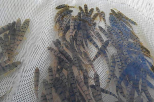 (2)及时分养:当鱼苗生长规格出现较大差异时,因其有大吃小的习性,因此,要及时过筛分养。同一池的鱼苗,力求规格一致,以免影响鱼苗成活率。