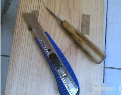 1.摔晕黄蟮,用锥子将鱼头固定在木板上。