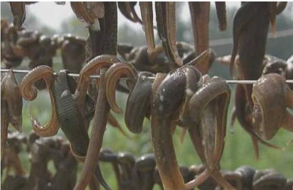 在我国池塘、稻田中分布很普遍的金线蛭:宽体金线蛭、光润金线蛭、尖细金线蛭。