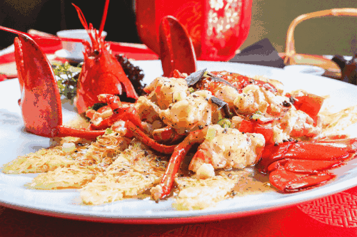 大多数大龙虾全身是红色的,也有一些别的颜色的。它的体形较大呈圆筒状,是世界上最大的虾(目前最大的大龙虾长66厘米,重16斤)。甲壳坚厚,头胸甲稍侧扁,前侧缘除海螯虾科外,不与口前板愈合,侧缘也不与胸部腹甲和胸肢基部愈合,颈沟明显。下面让我们来看一下大龙虾在餐桌上的图片。