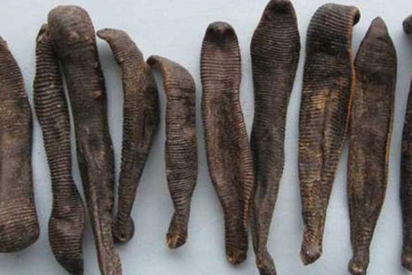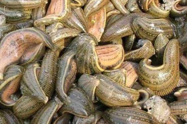 2、日本医蛭:日本医蛭体狭长,略呈圆柱形,背腹稍扁平,主要吮吸人畜血液,自然界中以鱼类和其他动物血为主,不易人工大面积饲养,在医学上多以活体使用,不用来加工药品,国外对医蛭有大量需求,但必须是活体。