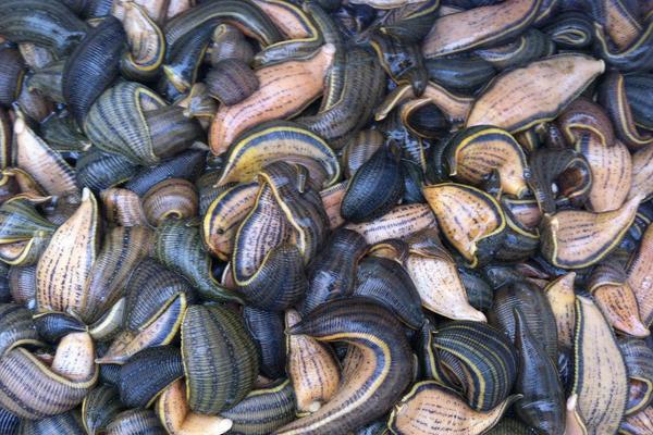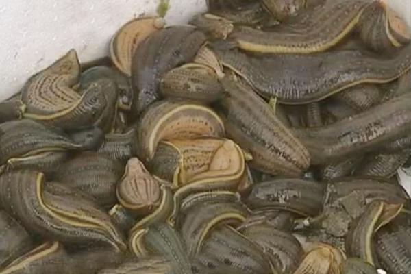 水蛭经过半年饲养即可达到商品规格,在稻收后即可捕捉加工,捕大留小。将捕来的水蛭放入盛有5%~10%食盐水的容器中,使其全部死亡,然后用清水漂洗干净,摊在竹帘或凉席上晒干即可出售。优质水蛭干的标准是:规格整齐,无杂质,含水率在20%以下。