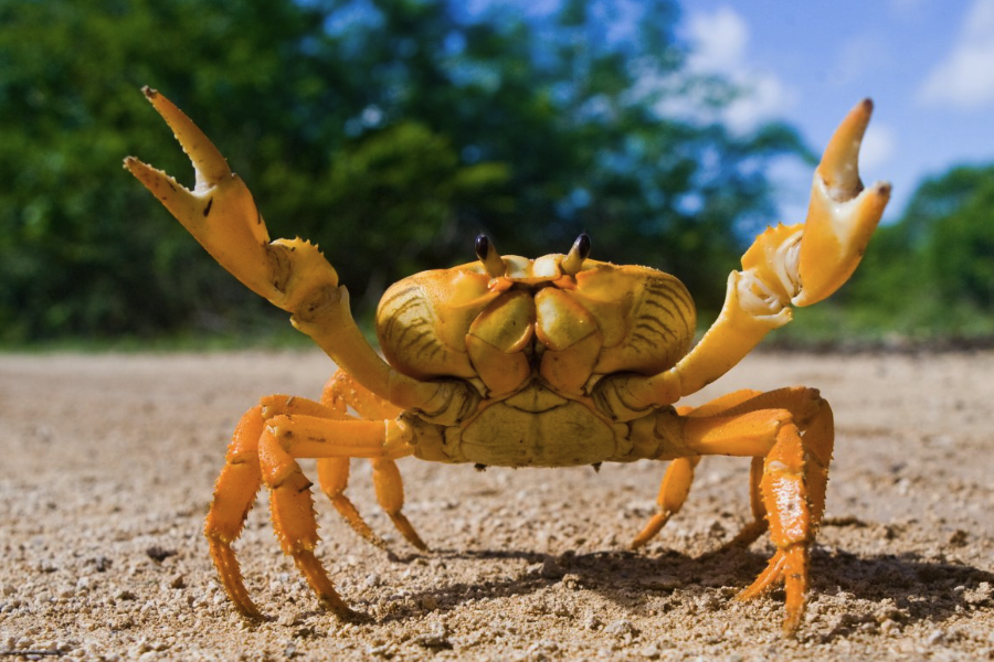 海鸟有时也会捕食浅海区域的底栖生物,包括老虎蟹。