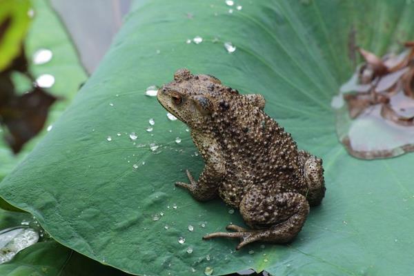 2、蟾蜍:蟾蜍为动物界、脊索动物门、脊椎动物亚门、两栖纲、滑体亚纲、无尾目、蟾蜍科、蟾蜍属两栖动物。、最常见的蟾蜍是中华大蟾蜍,俗称癞蛤蟆,在全国各地都有分布;其皮肤粗糙,背面长满了大大小小的疙瘩,这是皮脂腺。其中最大的一对是位于头侧鼓膜上方的耳后腺。蟾蜍水陆两栖,皮肤布满小孔具有渗透性,外加它们从出生就没有羊膜和壳等结构的保护。