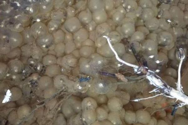 1、石蛙卵常产于水流平缓浅水处,附着在石块、水生植物体上,卵外的胶质膜遇水膨胀变厚,粘性强,相连成索状或葡萄串状,有时长达20厘米左右。卵的直径一般为4毫米,最大可达5毫米,根据水温的不同蛙卵通常在8~15天后,孵化成蝌蚪,蝌蚪喜生活在溪水坑内的大石逢内或碎石堆中,蝌蚪在适宜的环境中,一般经50~78天的生长,变态成幼蛙。