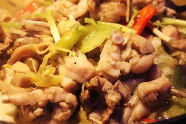 1、去掉石蛙的头、内脏,将皮保留,切成小块。