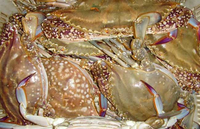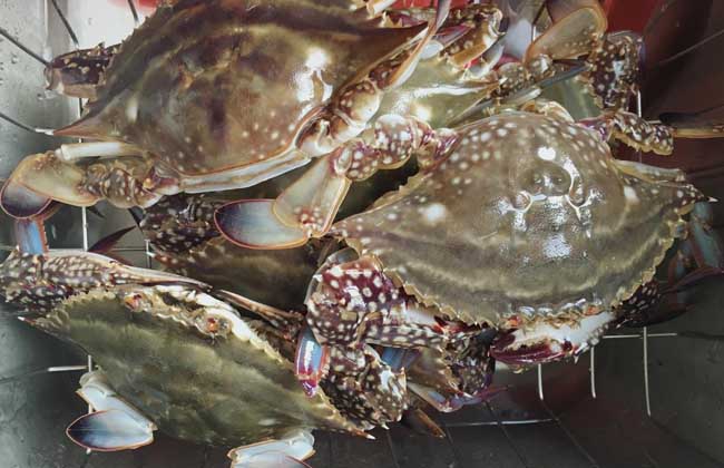 花蟹学名远海梭子蟹,俗称远洋梭子蟹、蓝蟹、沙蟹、花脚市仔、兰花蟹(雄性)。花蟹的壳上有明显的星斑,深浅不一的蓝色底色。