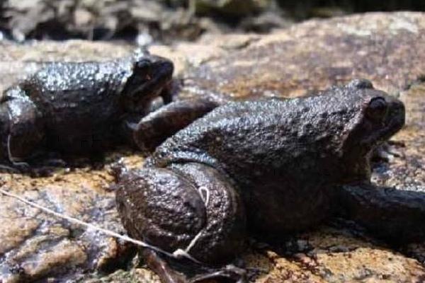 1、石蛙:石蛙体大而粗壮,体形近似于黑斑蛙或虎纹蛙,体色各异,头扁而阔,吻端钝圆,突出于下颌,躯干部较短,平扁,无尾,颈不明显,雄蛙前肢特别,背部有长短不一的窄长疣,腹呈淡黄白色,雌性前肢不如雄性发达,背面无窄长疣,腹面光滑呈白色。