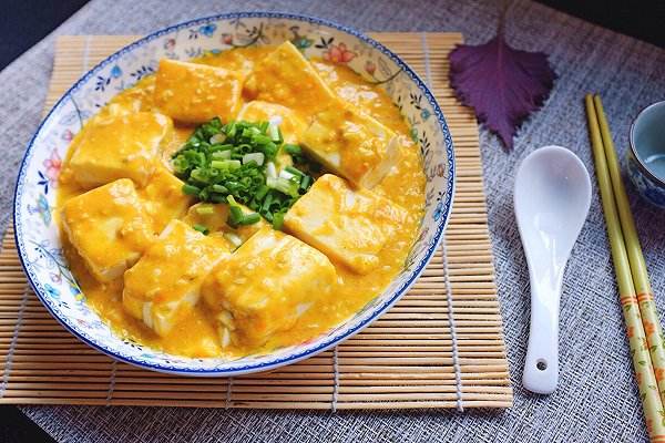 蟹黄豆腐也称为蟹黄烧豆腐、蟹黄豆腐煲,是一道特色京菜。蟹黄豆腐原本用蟹黄、豆腐等食材制成。后因蟹黄成本高、取制复杂,常用咸蛋代替。今天我们就要来介绍下蟹黄豆腐有蟹黄和没蟹黄的做法。