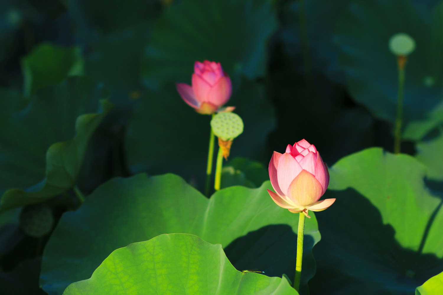 荷花有两种繁殖方法:播种和分藕。播种法:将种子浸泡至发芽后移栽;分藕法:将种藕用清水洗净,20度斜插入泥,注意避免尾部进水(入水部分在5-10cm)。