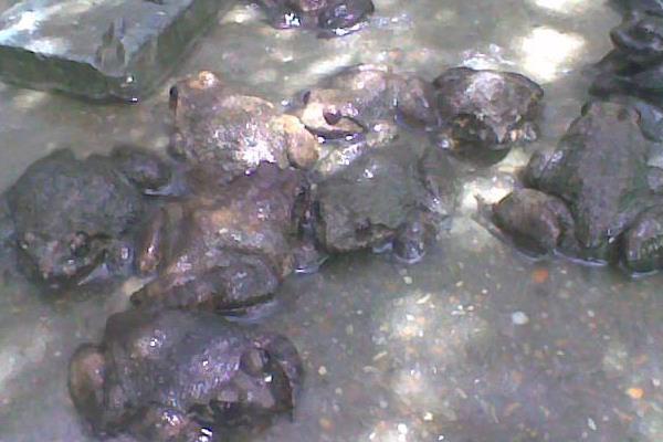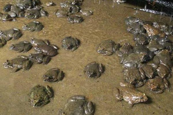 3、繁殖能力强在正常管理条件下,体重200克以上的种蛙年可产卵两次,主要集中在4-5月和7-8月,每次排卵量可达1000-2000粒。卵为粘性卵,卵大膜薄,多呈片状粘附于石块或水池的侧壁上,经10-15天孵化即成蝌蚪,孵化率可达90%以上,蝌蚪变幼蛙率在80%左右。如在水质良好的地方,每平方米可饲养蝌蚪1000尾左右,幼蛙150-200只,成蛙20-80只。1个专职养殖人员-可负责100平方米左右养殖池的各项工作。