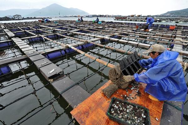 2、筏式养殖:把幼鲍放在养殖笼中,然后将养殖笼固定在浮笼上面养殖,定期向笼内投喂饵料,清理粪便、残留的饵料,为确保笼内外水流畅通,还要定期清洗养殖笼孔。